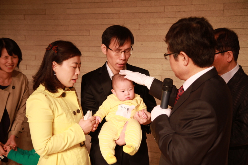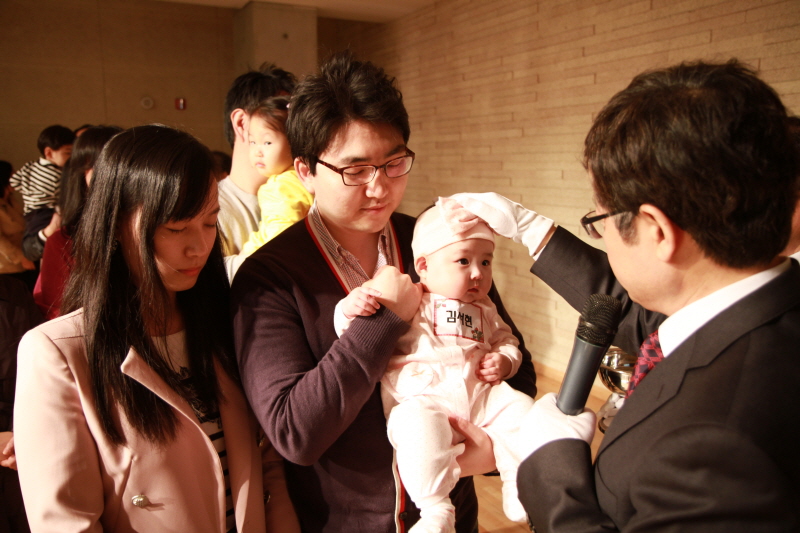 지난 4월 21일 / b관 1층 소예배실에서 있었던 유아세례 사진입니다.
