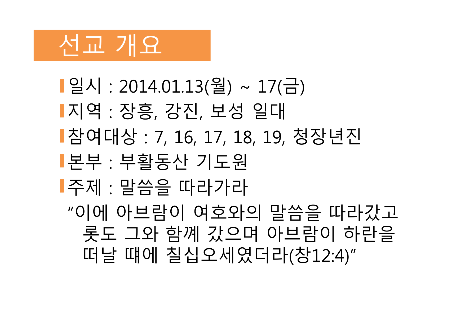 [제11차 장흥선교] 선교안내 - 교육