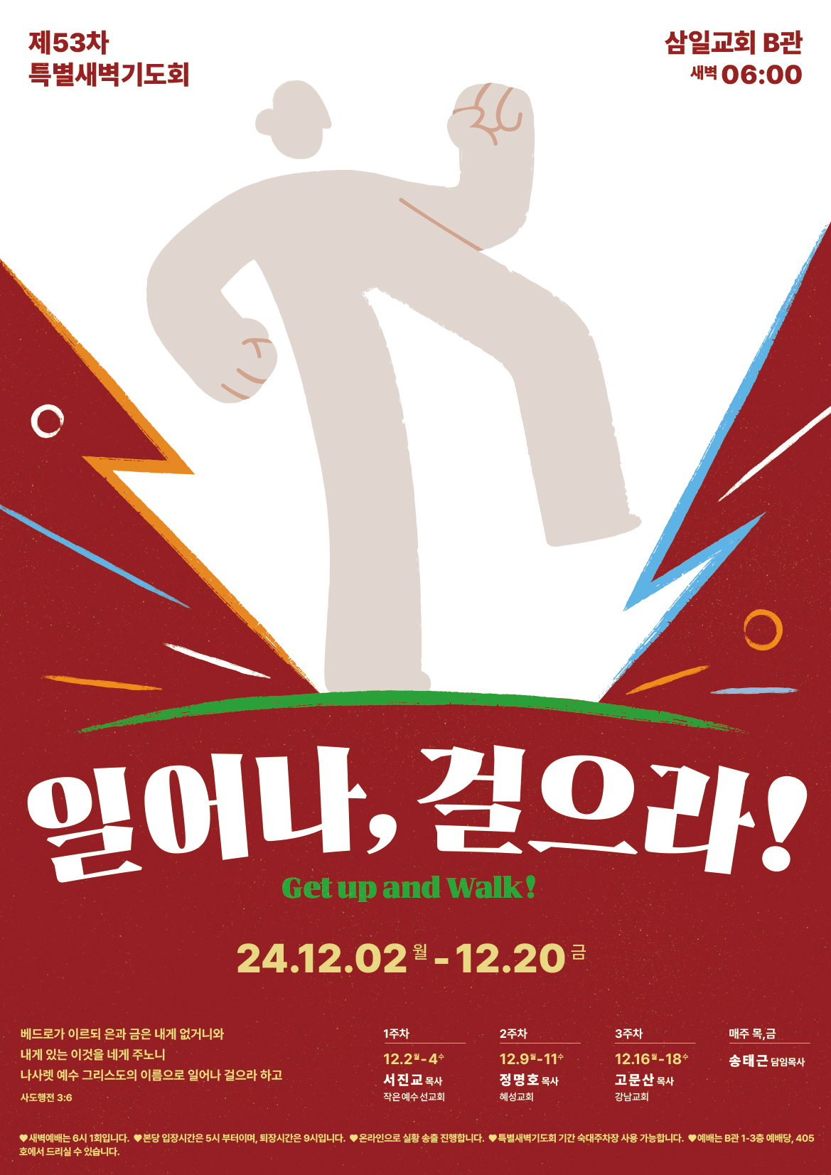 1. 주제: "일어나, 걸으라!"(Get up and Walk!) [행3:6]