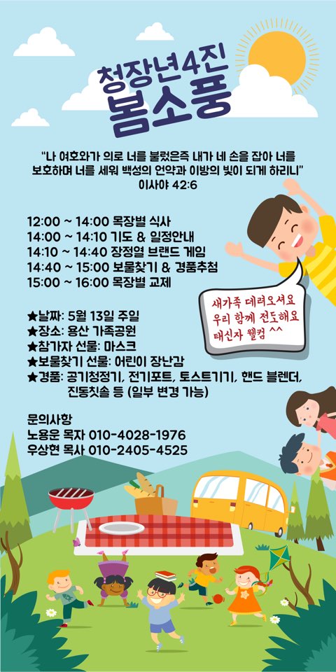 3. 심방하기 좋은 계절입니다. 언제든지 진장에게 연락해 주세요!(우상현 목사 : 010-2405-4525)