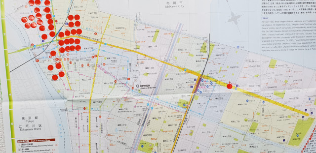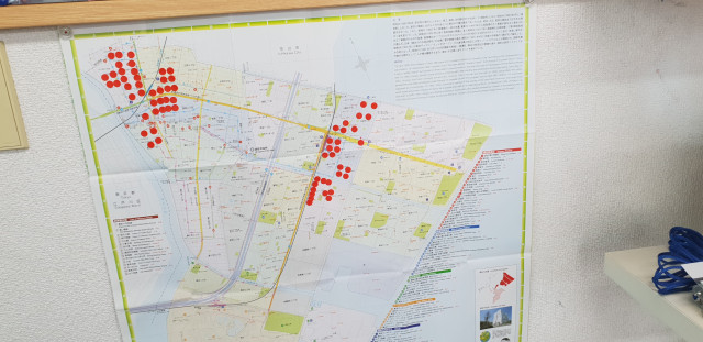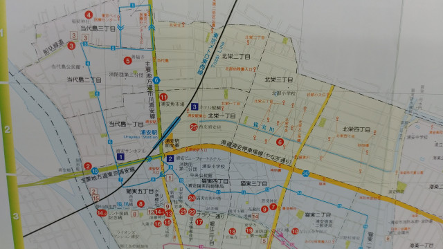 우측에 빨간 스티커가 TBIC교회이고 우측에 우라야스역 근처가 저희가 전단지 사역을 했던 지역입니다