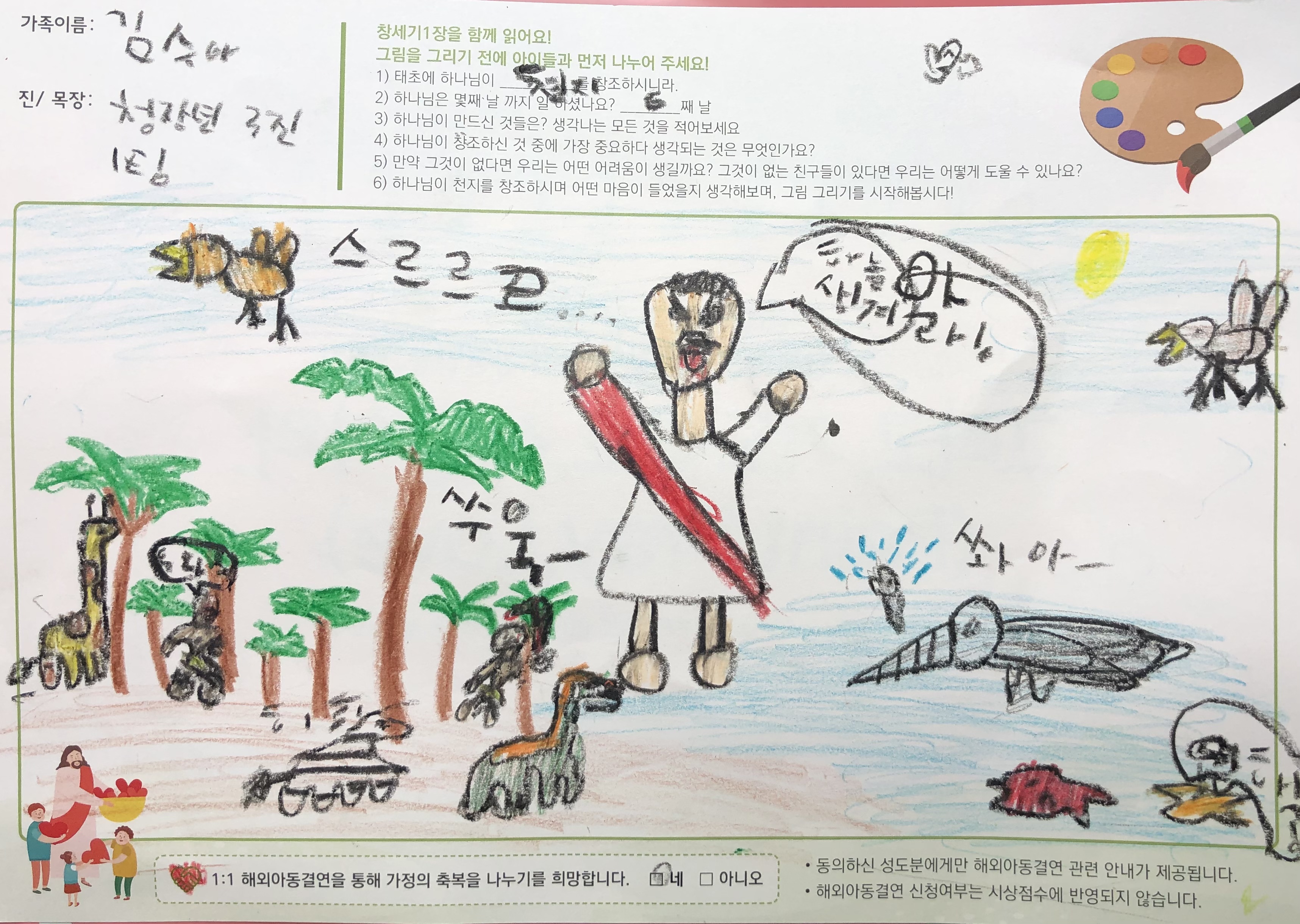 수아는 창세기 1장 그리기를 하면서서