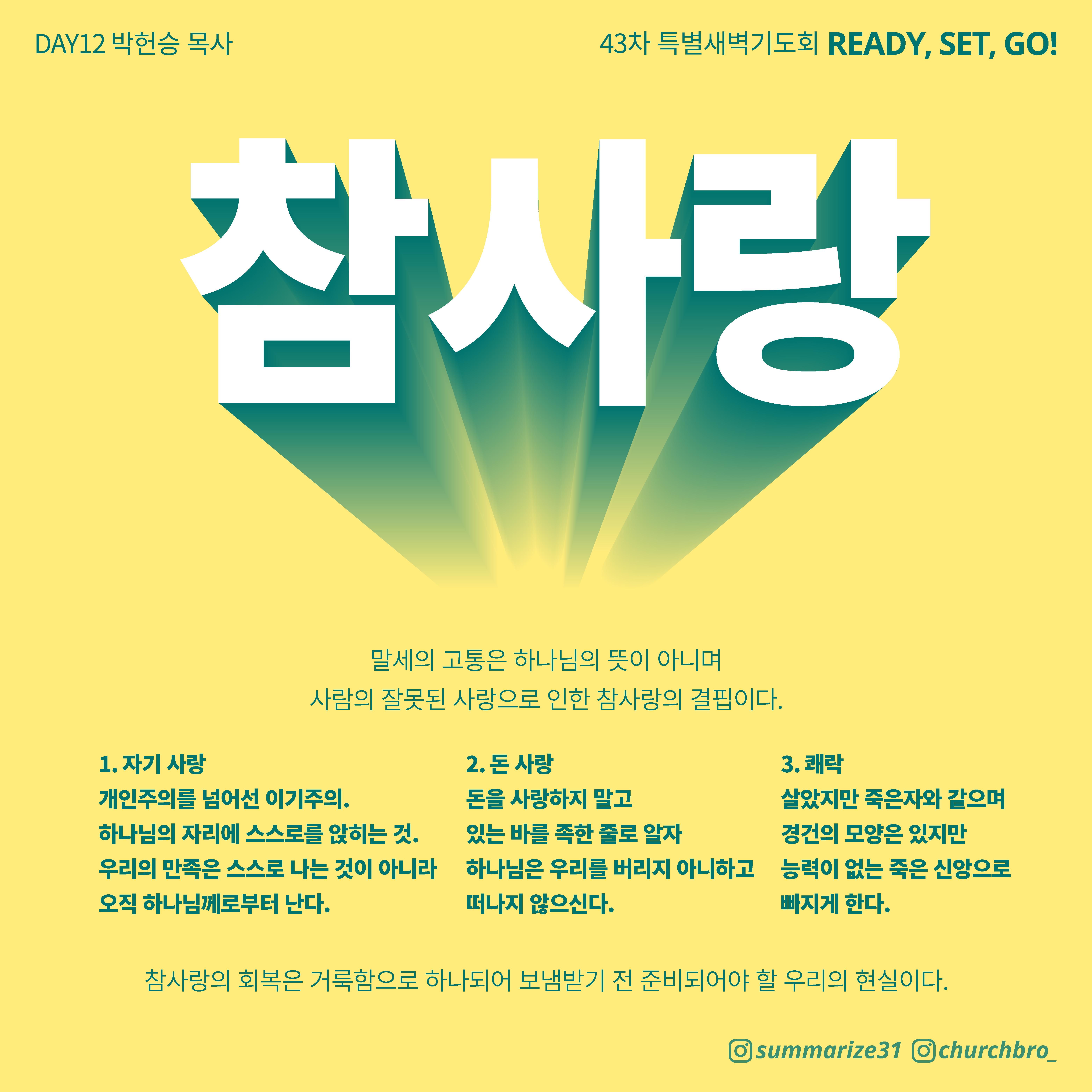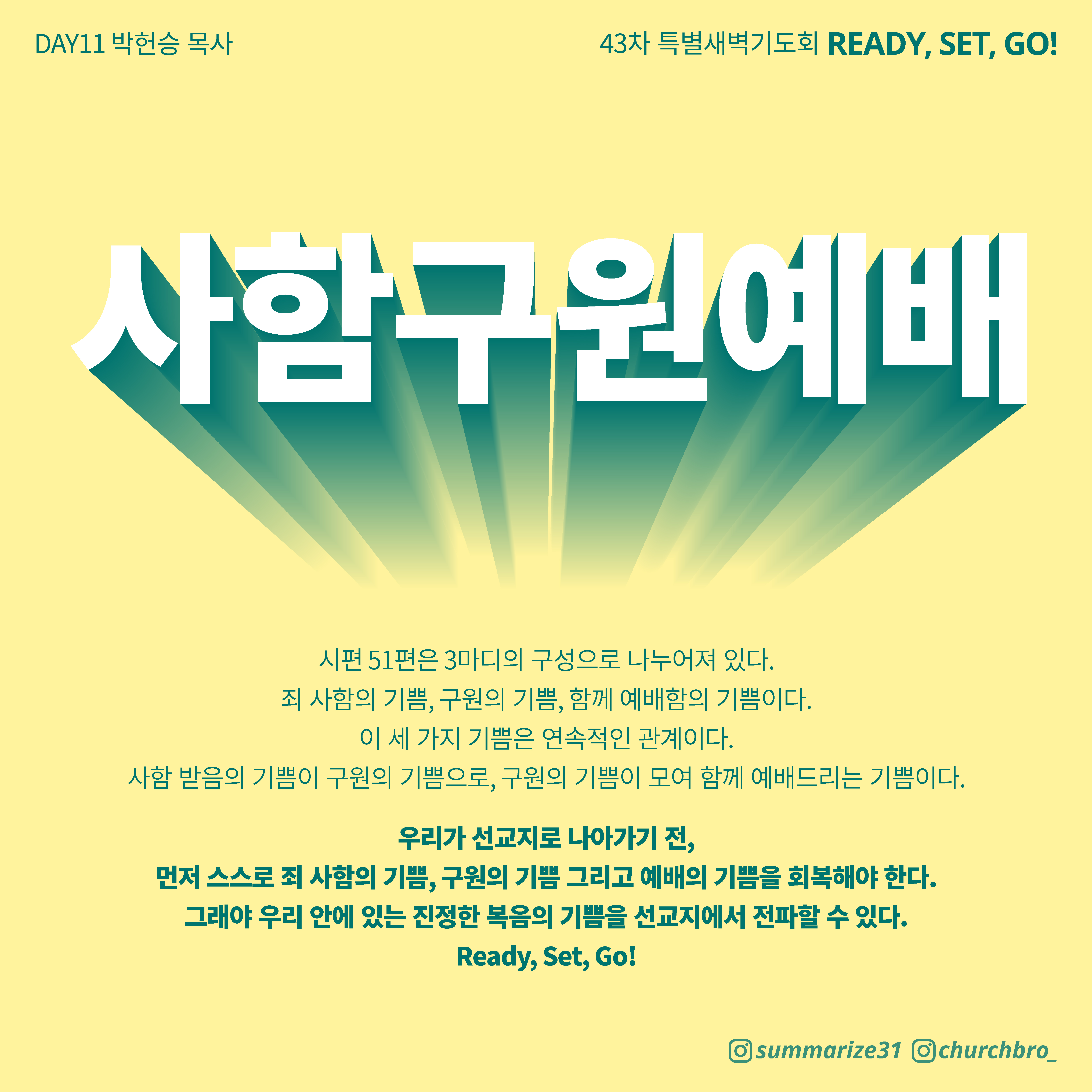 주제 : "Ready! Set! Go! (거룩함, 하나됨, 보내심)"