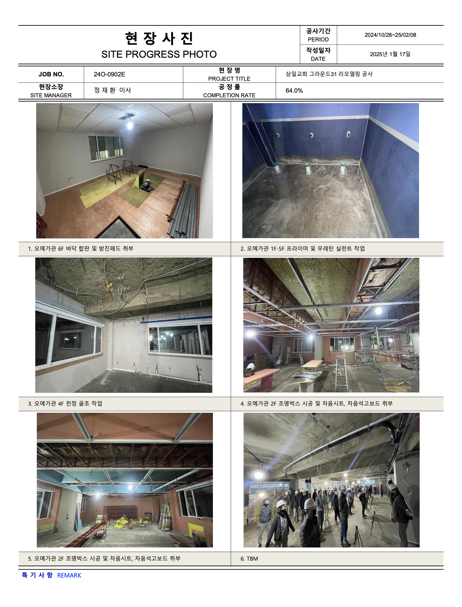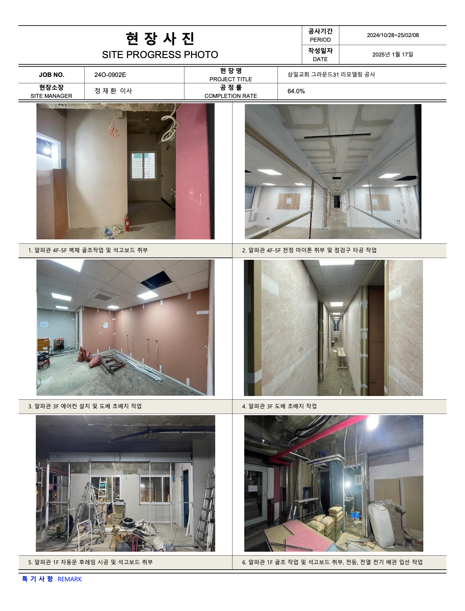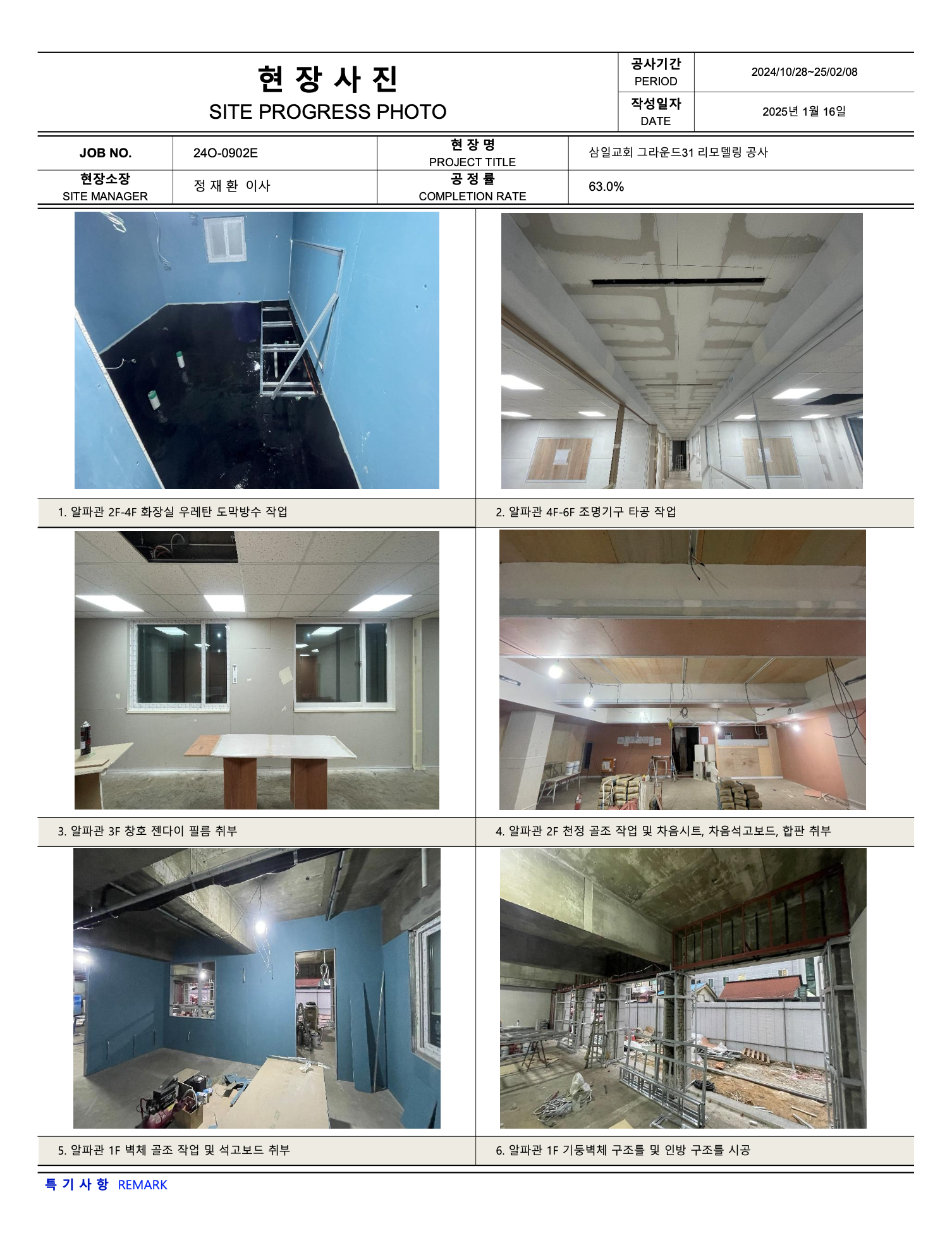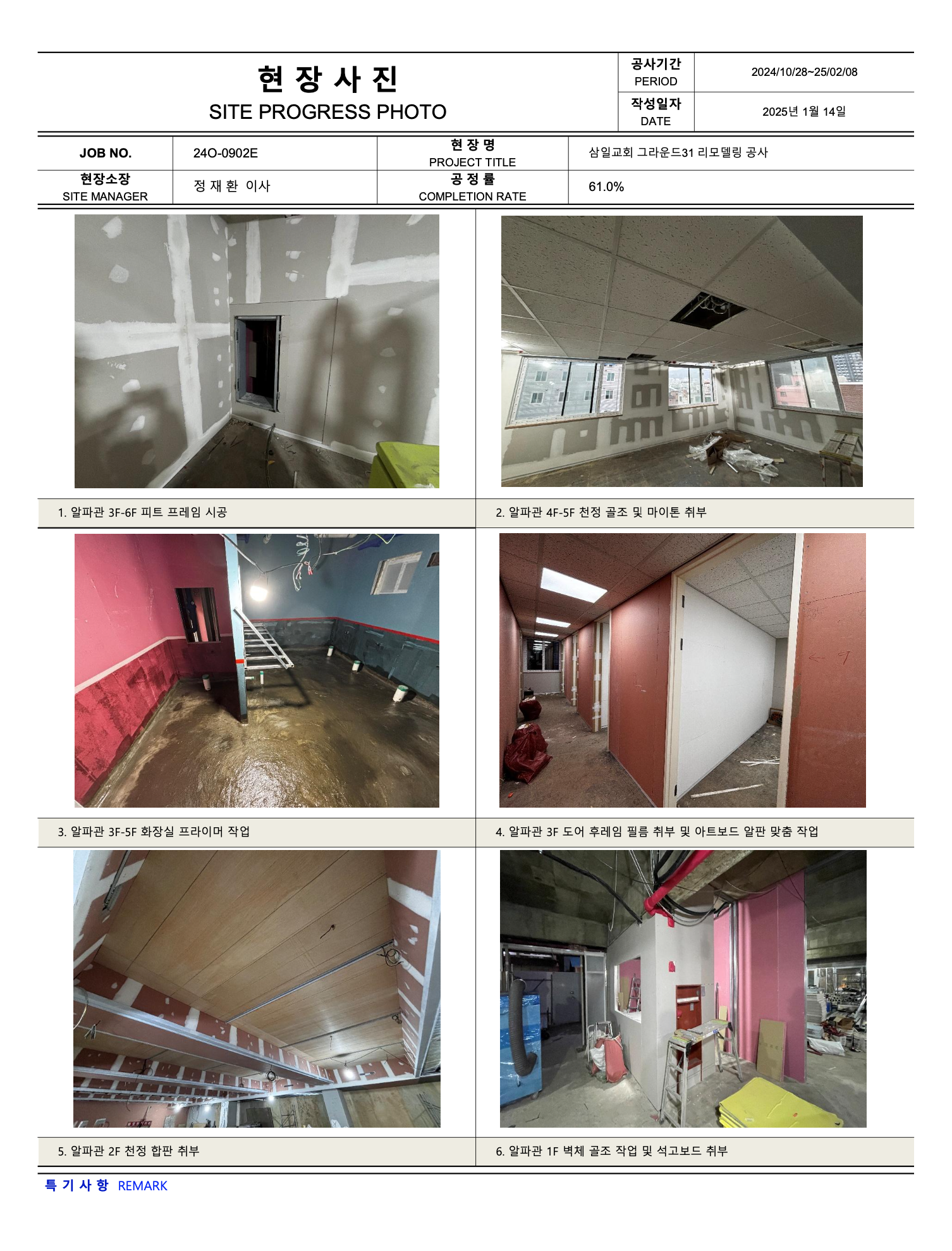 그라운드31 리모델링공사 진행상황 (25년 02월10일 ~ 02월 16일)