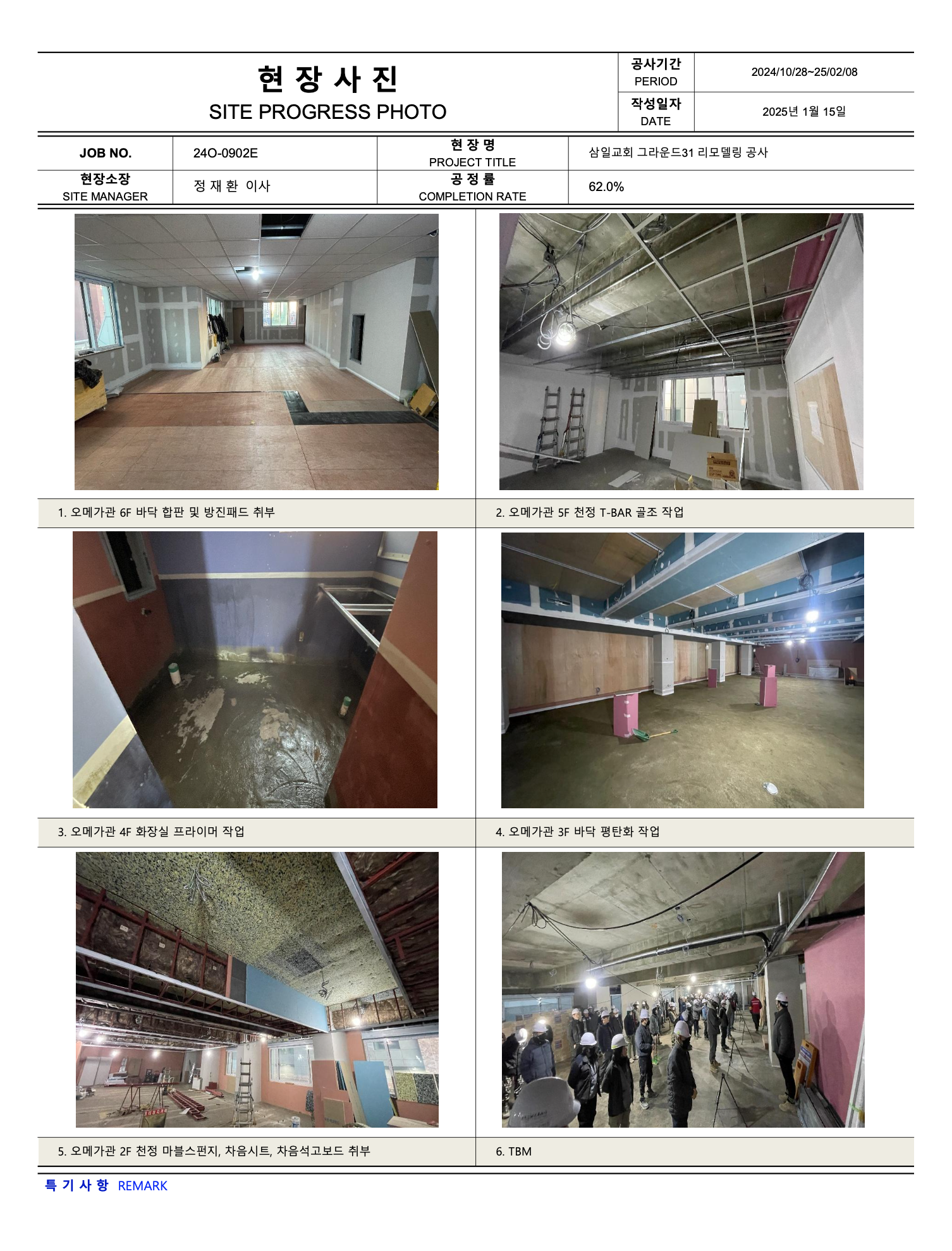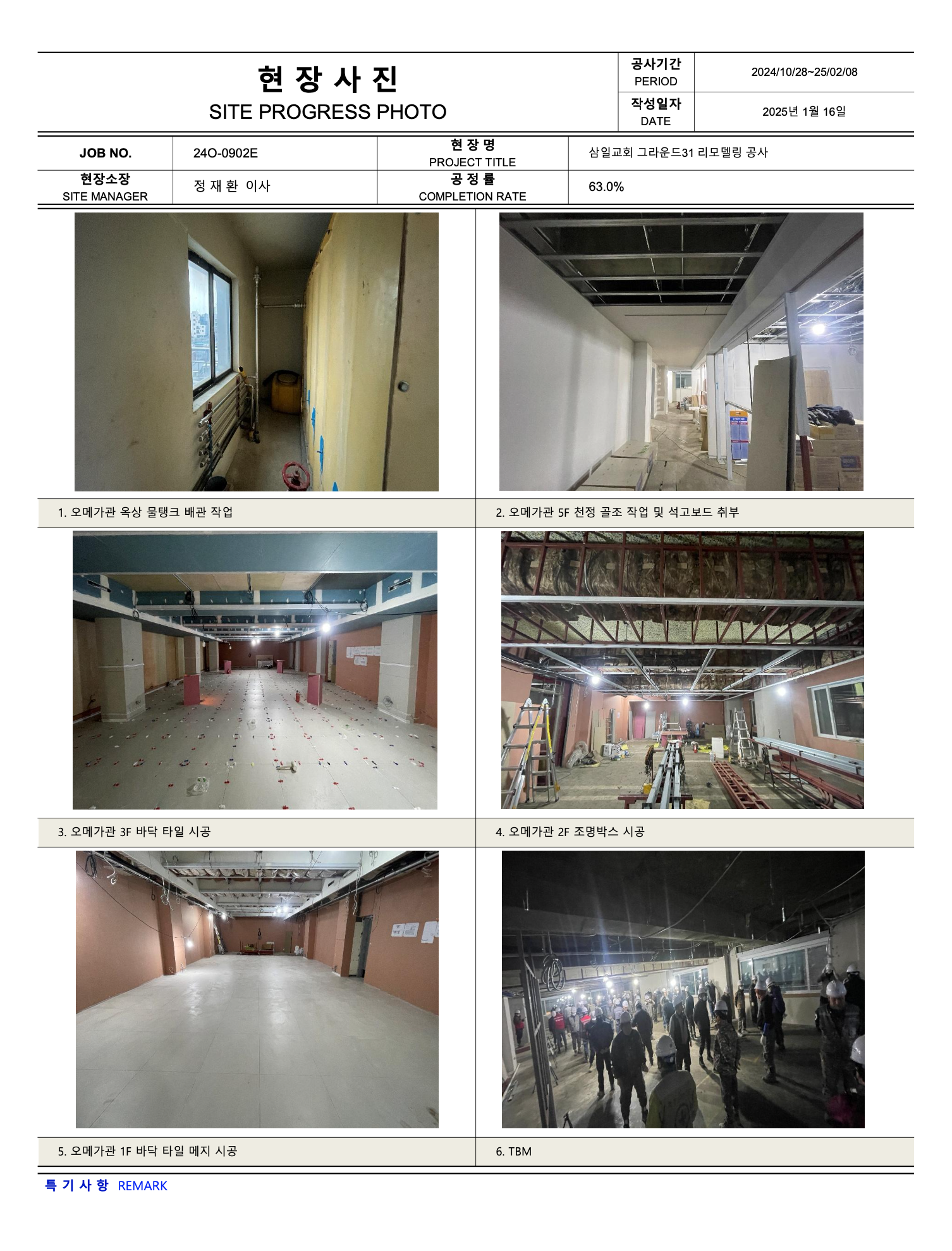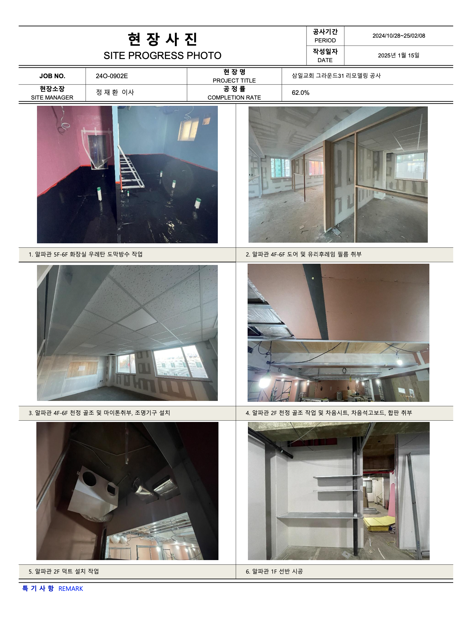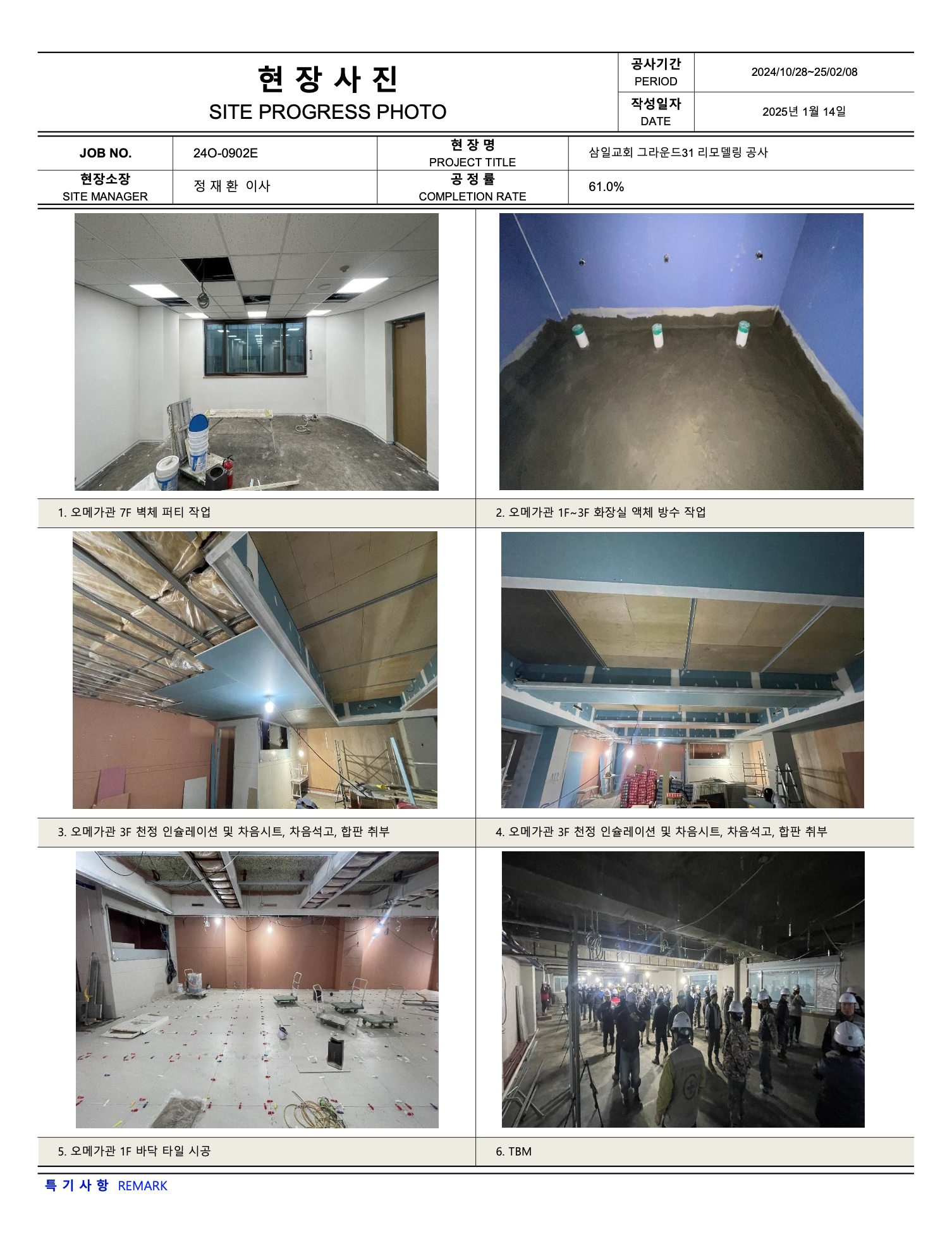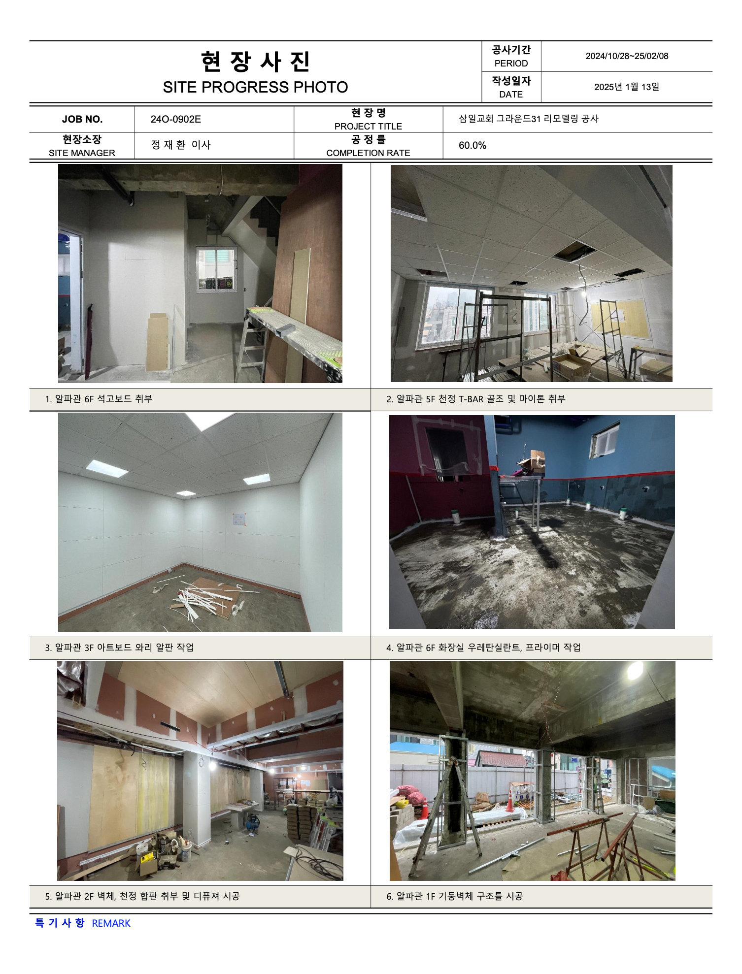 그라운드31 리모델링공사 진행상황 (25년 02월10일 ~ 02월 16일)
