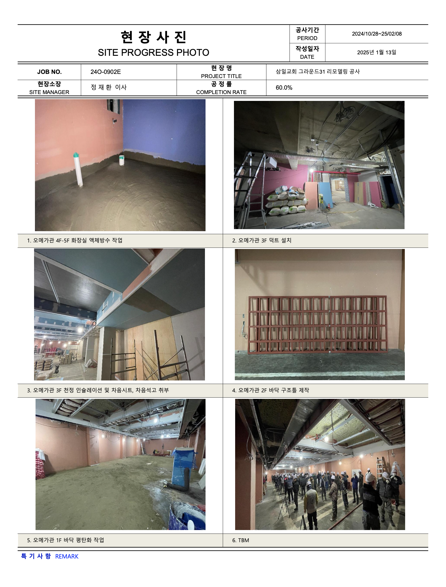 그라운드31 리모델링공사 진행상황 (25년 01월 13일 ~ 01월 17일)