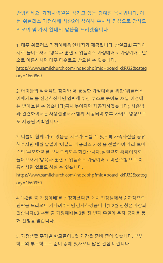 5. ** 3~4월 위플러스 신청(신규) 및 가정예배 카드 배송 신청서