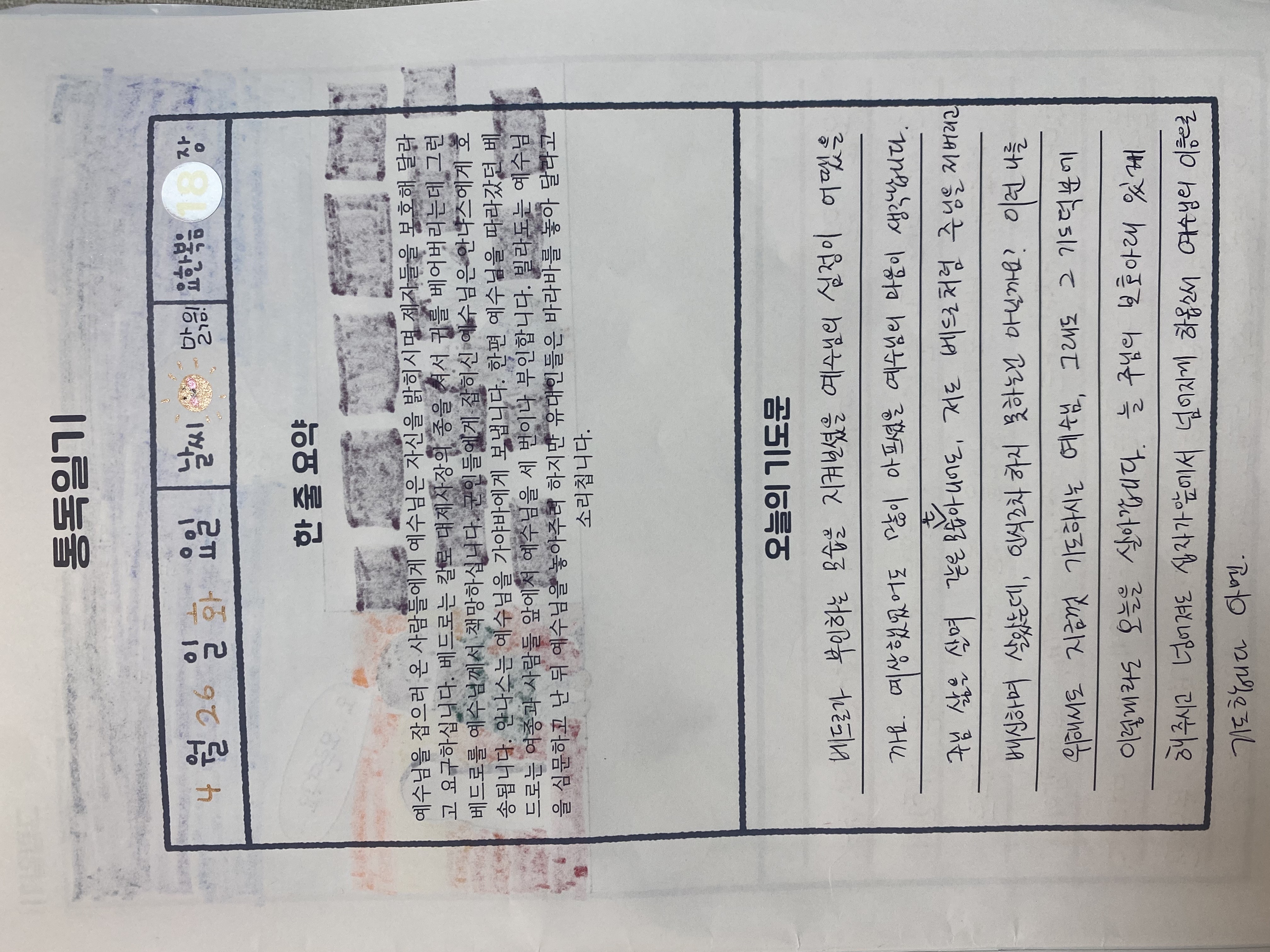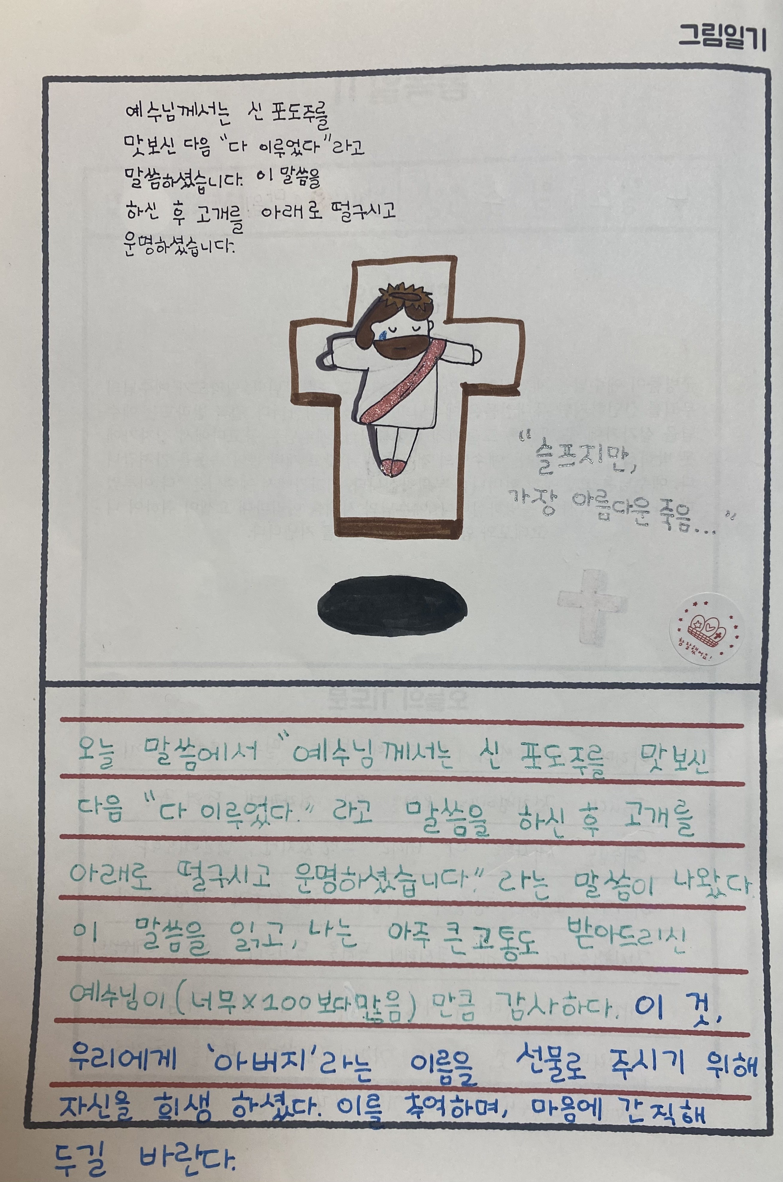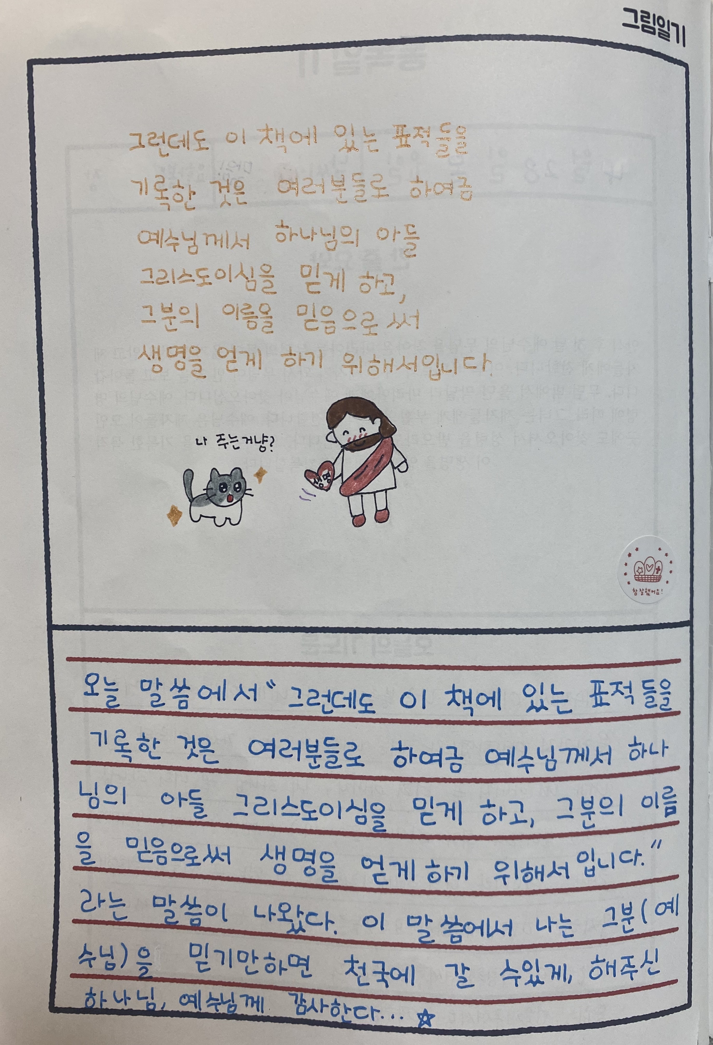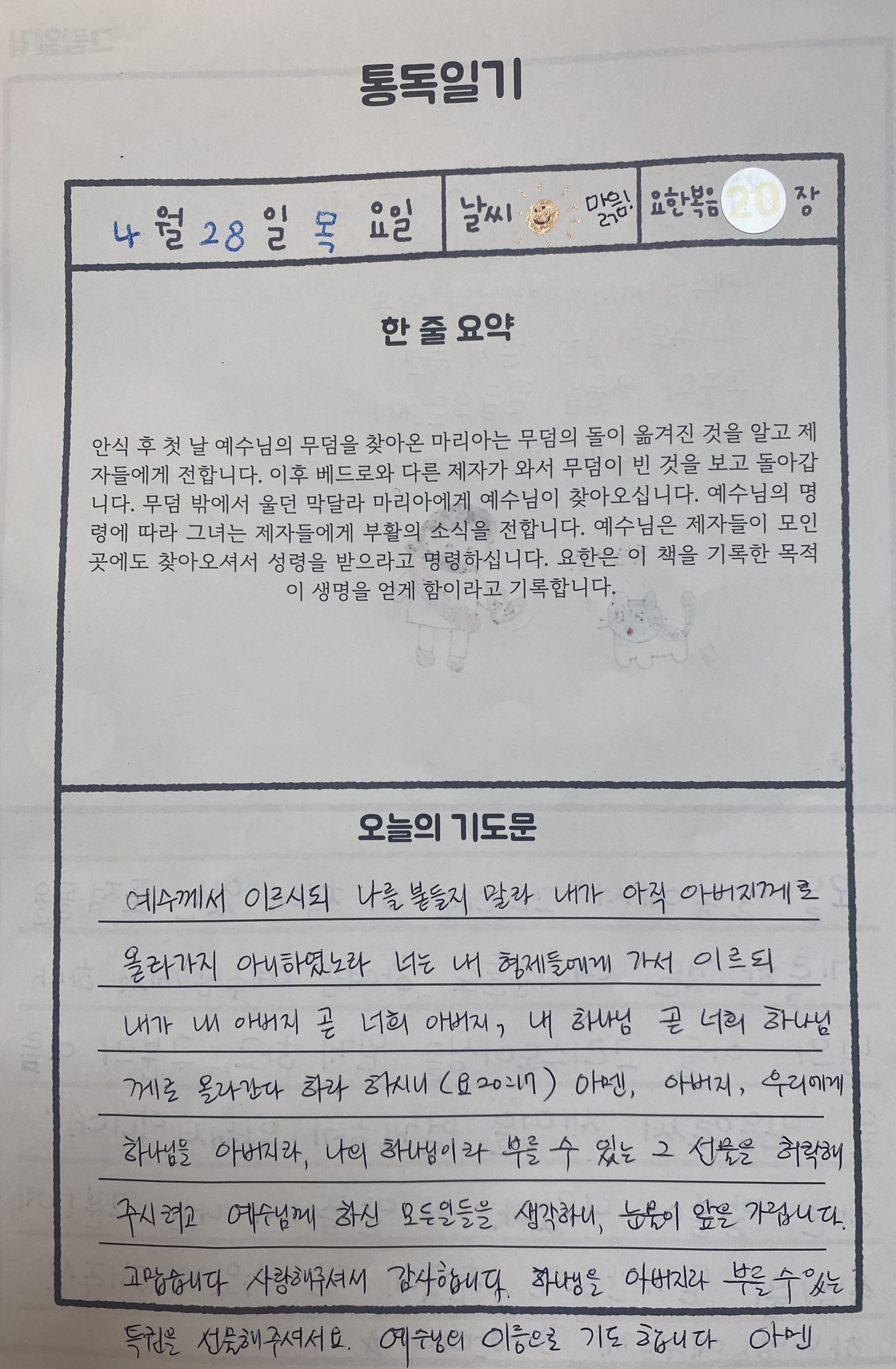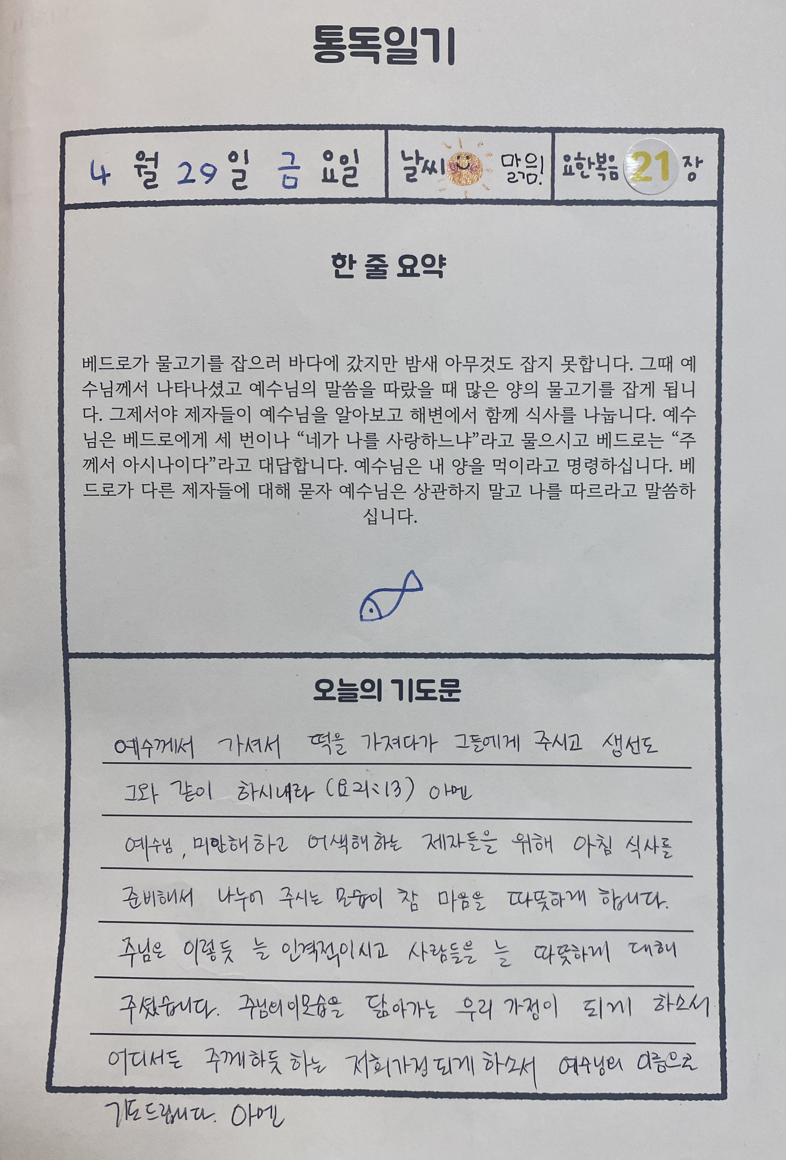 요한복음 1장에서부터 21장까지 아이와 함께 묵상 완주하게 하신 주님께 감사드립니다. ^^*