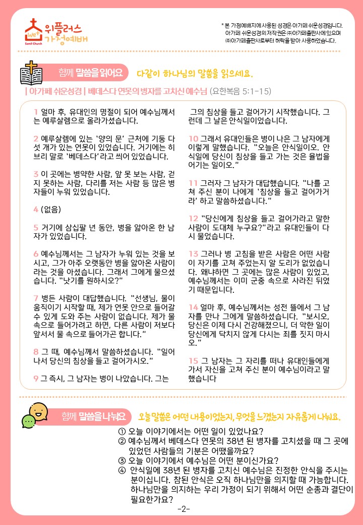 9월 2주차 가정예배교안입니다.