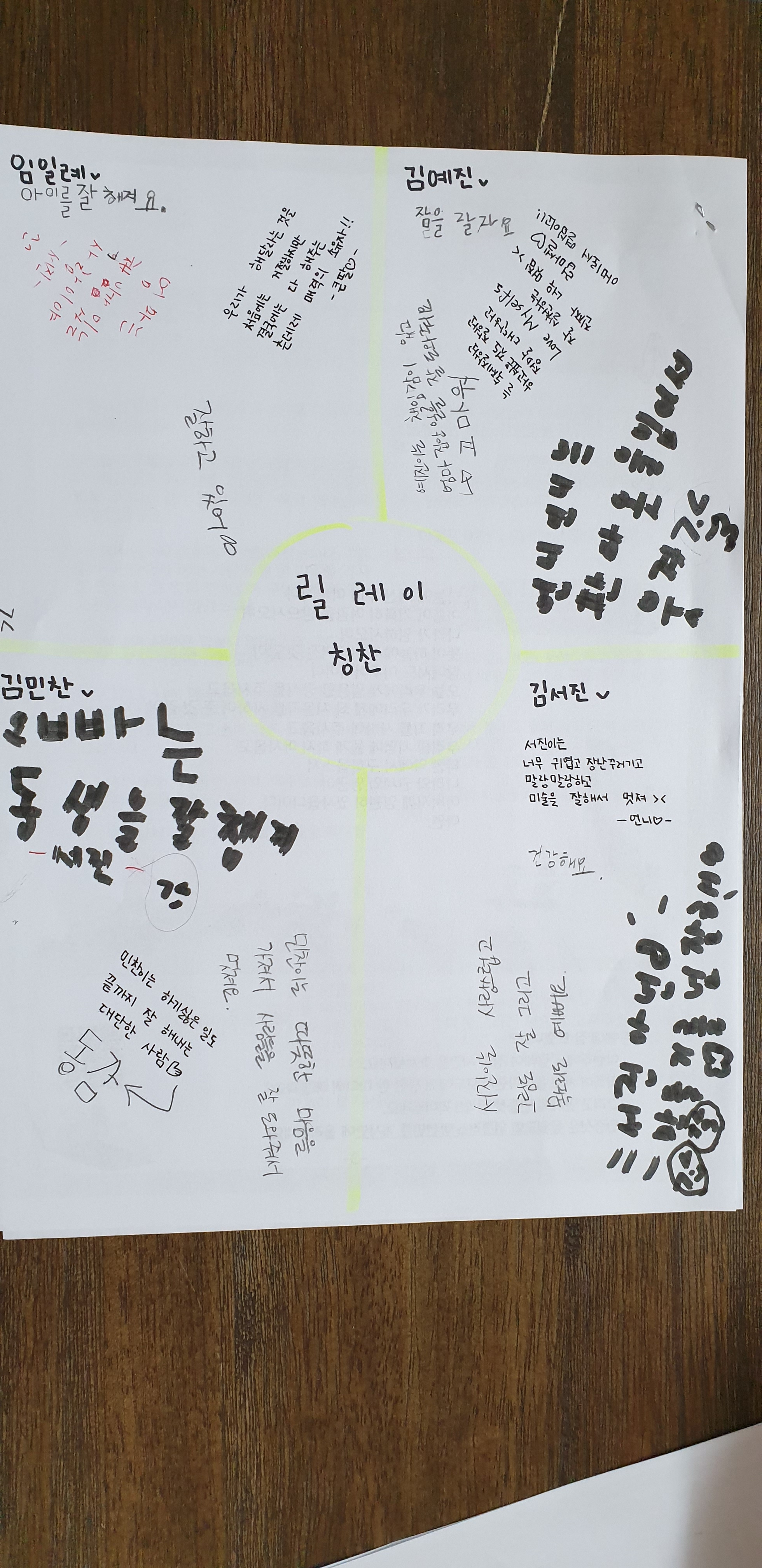 릴레이 칭찬을 글로 남겼어요~~