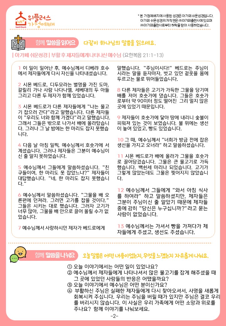 11월 2주차 가정예배교안입니다.