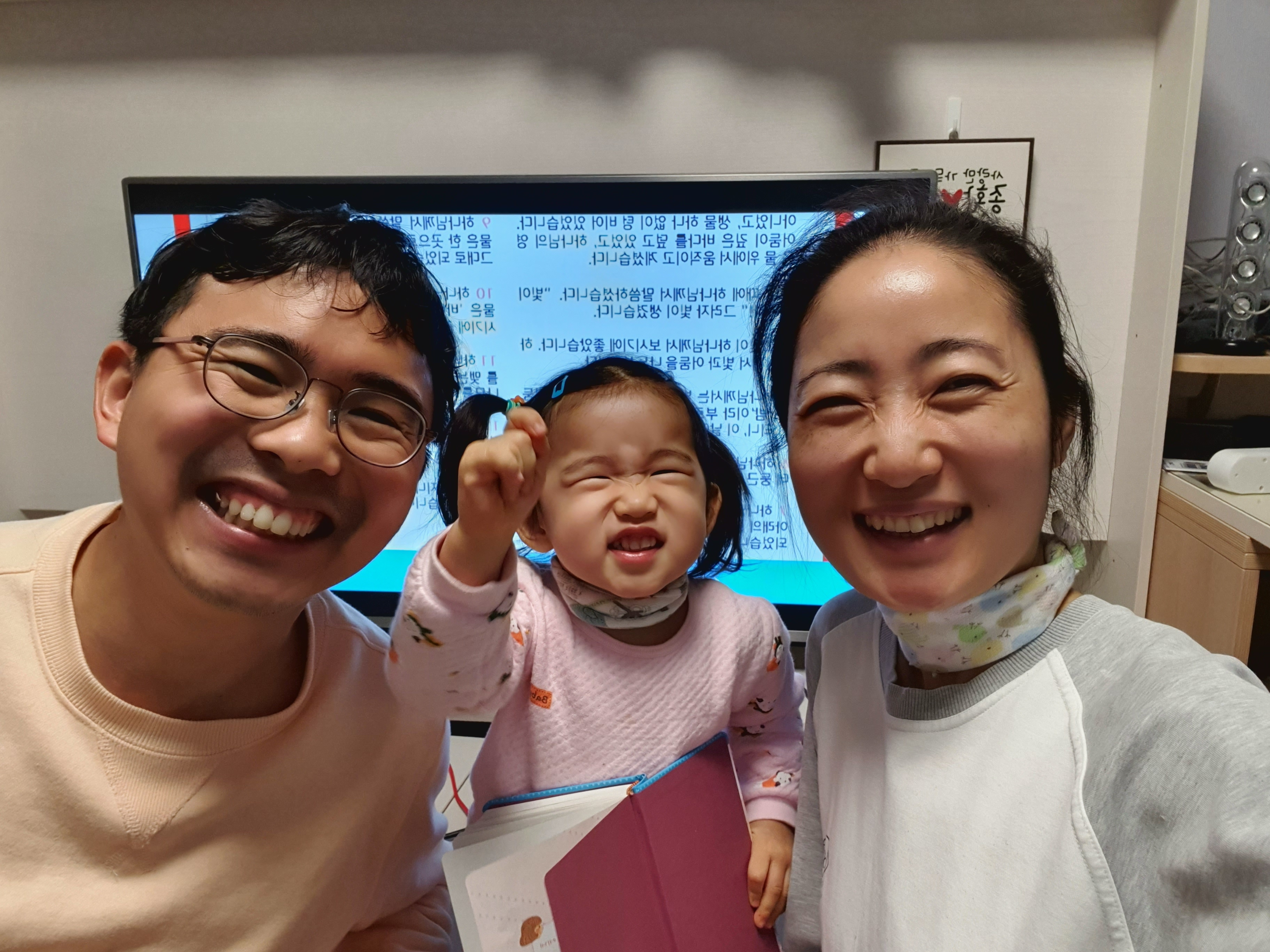 영아부 찬양으로 함께 율동하며 예배하는데, 2주만에 가정예배를 드려서인지, 아기가 정말 신이나서 잘때도 계속 찬양을 흥얼거렸습니다. :)