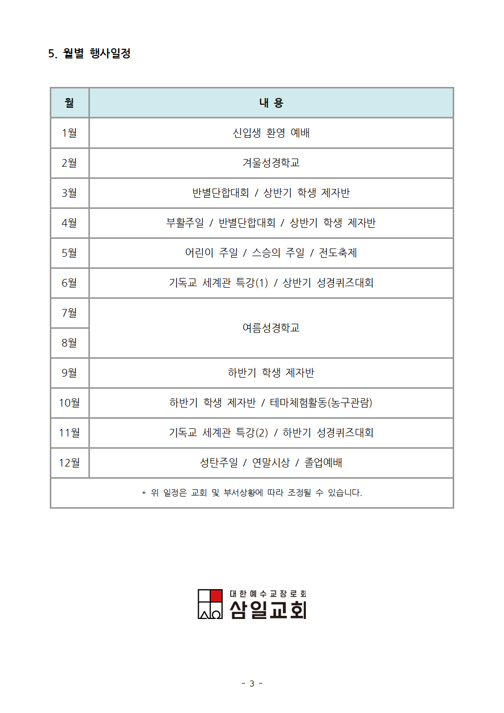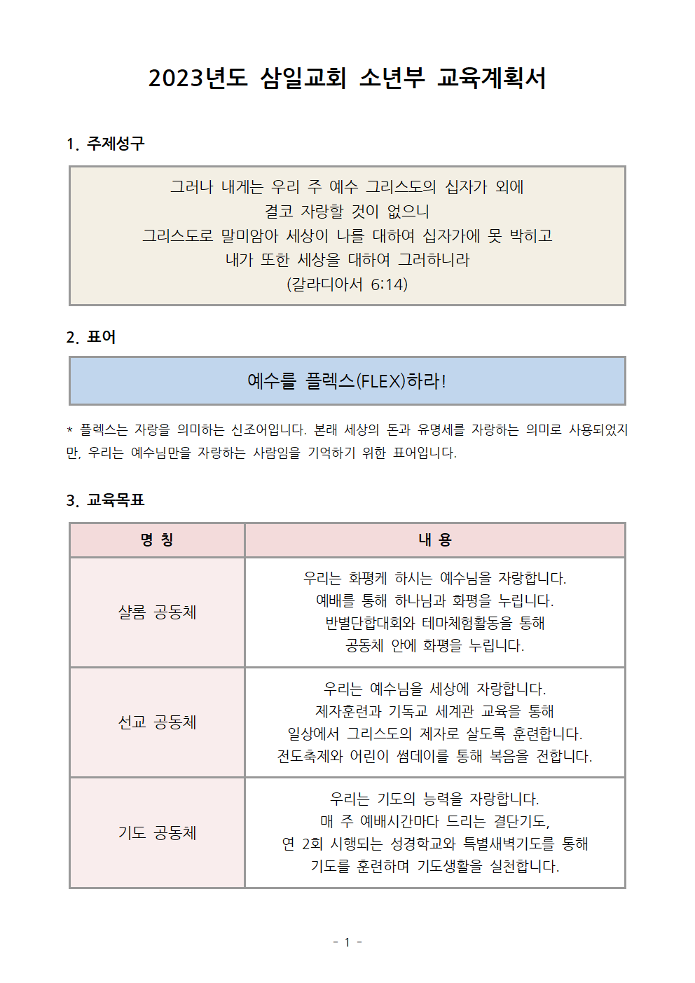[삼일교회 소년부] 2023년도 사역계획